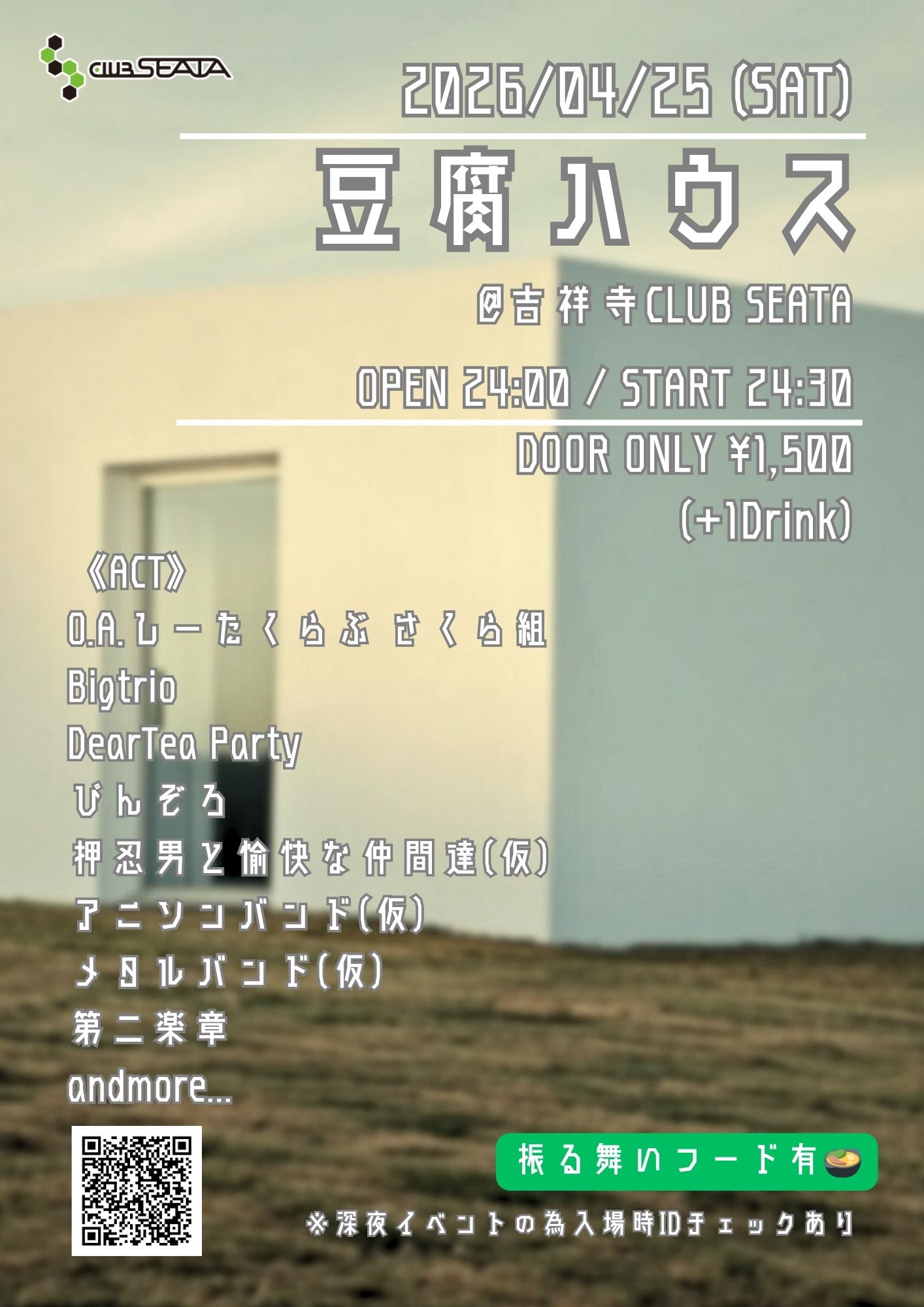 吉祥寺 CLUB SEATAO.A.しーたくらぶ さくら組 / Bigtrio DearTea Party / ぴんぞろ 押忍男と愉快な仲間達(仮) / アニソンバンド(仮) / メタルバンド(仮) / 第二楽章 / andmore…