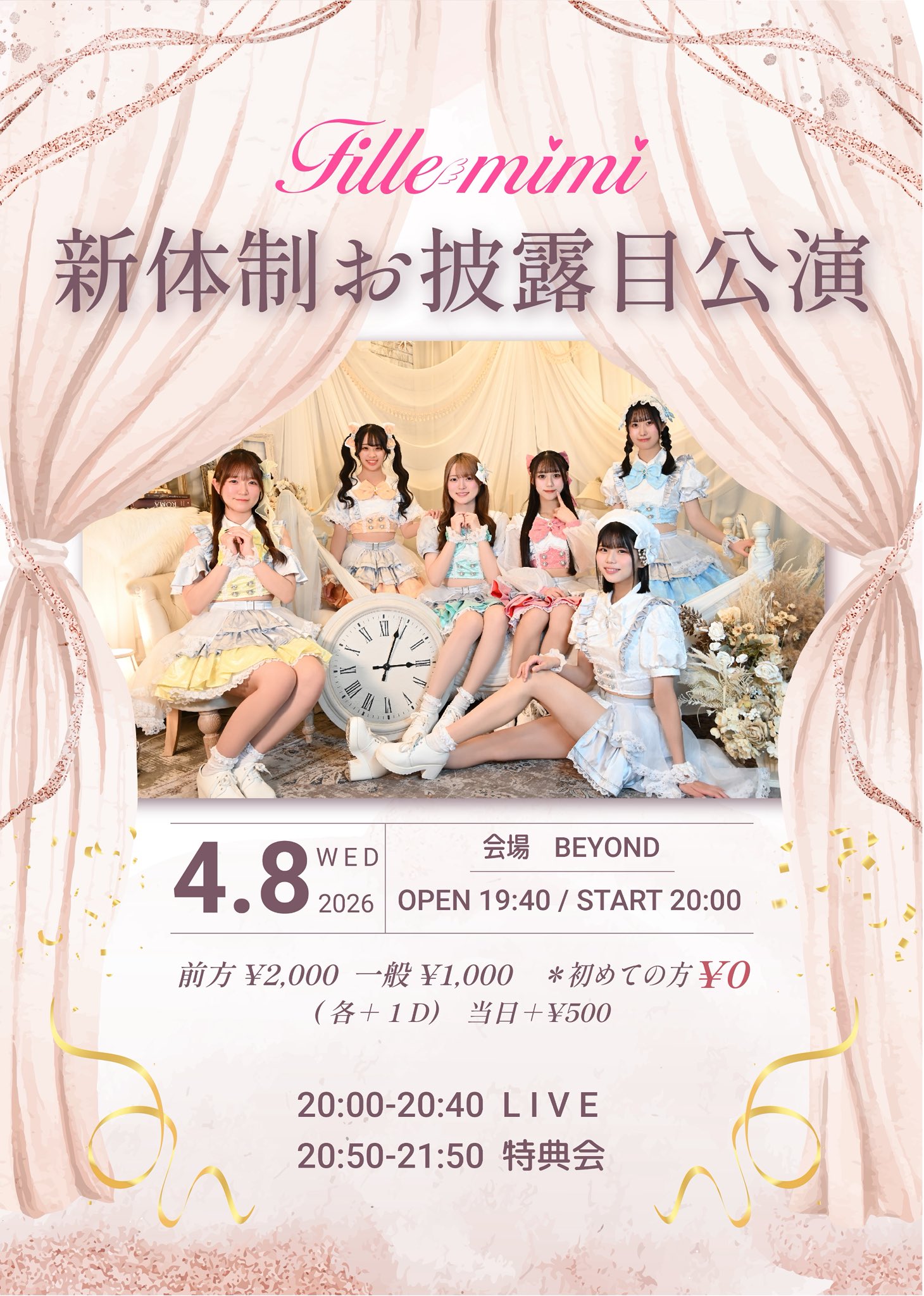 04.08(Wed) Fille mimi 新体制お披露目公演 アメリカ村BEYOND X Facebook LINE コピー 2026.04.01 ACT fille mimi イベント詳細 アメリカ村 BEYONDベースオントップグループのライブハウス『アメリカ村 BEYOND(ビヨンド)』大阪アメリカ村の中心地にあるライブハウスです。