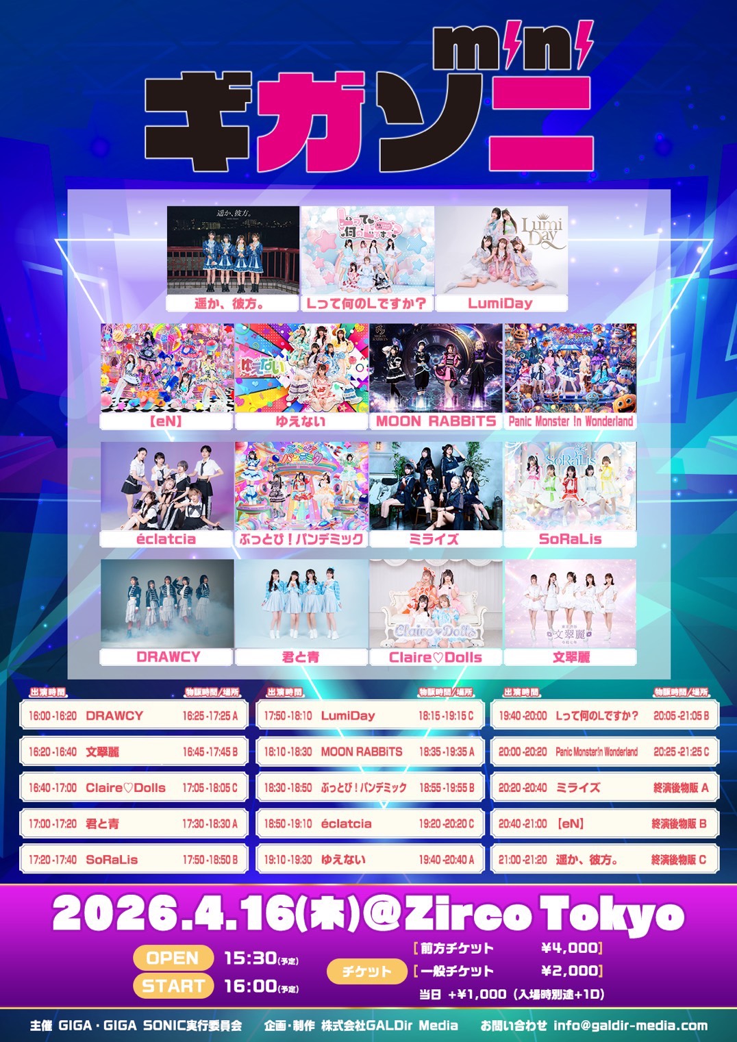 新宿 Zirco Tokyo遥か、彼方。/ Lって何のLですか? / LumiDay / 【eN】/ ゆえない / MOON RABBiTS / Panic Monster !n Wonderland / éclatcia / ぶっとび!パンデミック / ミライズ / SoRaLis / DRAWCY / 君と青 / Claire♡Dolls /文翠麗