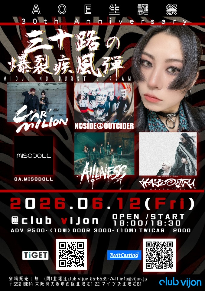 北堀江 club vijonVAR’MILION、ノーサイド・アウトサイダー、AILLNESS、WAY DO THRU