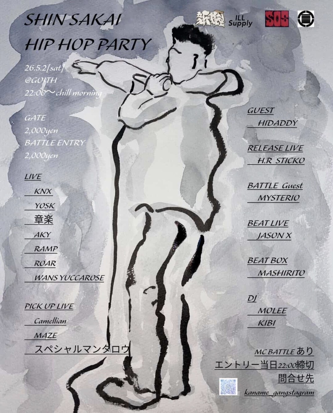 GUEST : HIDADDY // RELEASE LIVE : H.R STICKO // BATTLE Guest : MYSTERIO // LIVE : KNX / YOSK / 章楽 / AKY / RAMP / ROAR / WANS YUCCAROSE // PICK UP LIVE : camellian / MAZE / スペシャルマンタロウ // BEAT LIVE : JASON X // BEAT BOX : MASHIRITO // DJ : MOLEE / KIBI