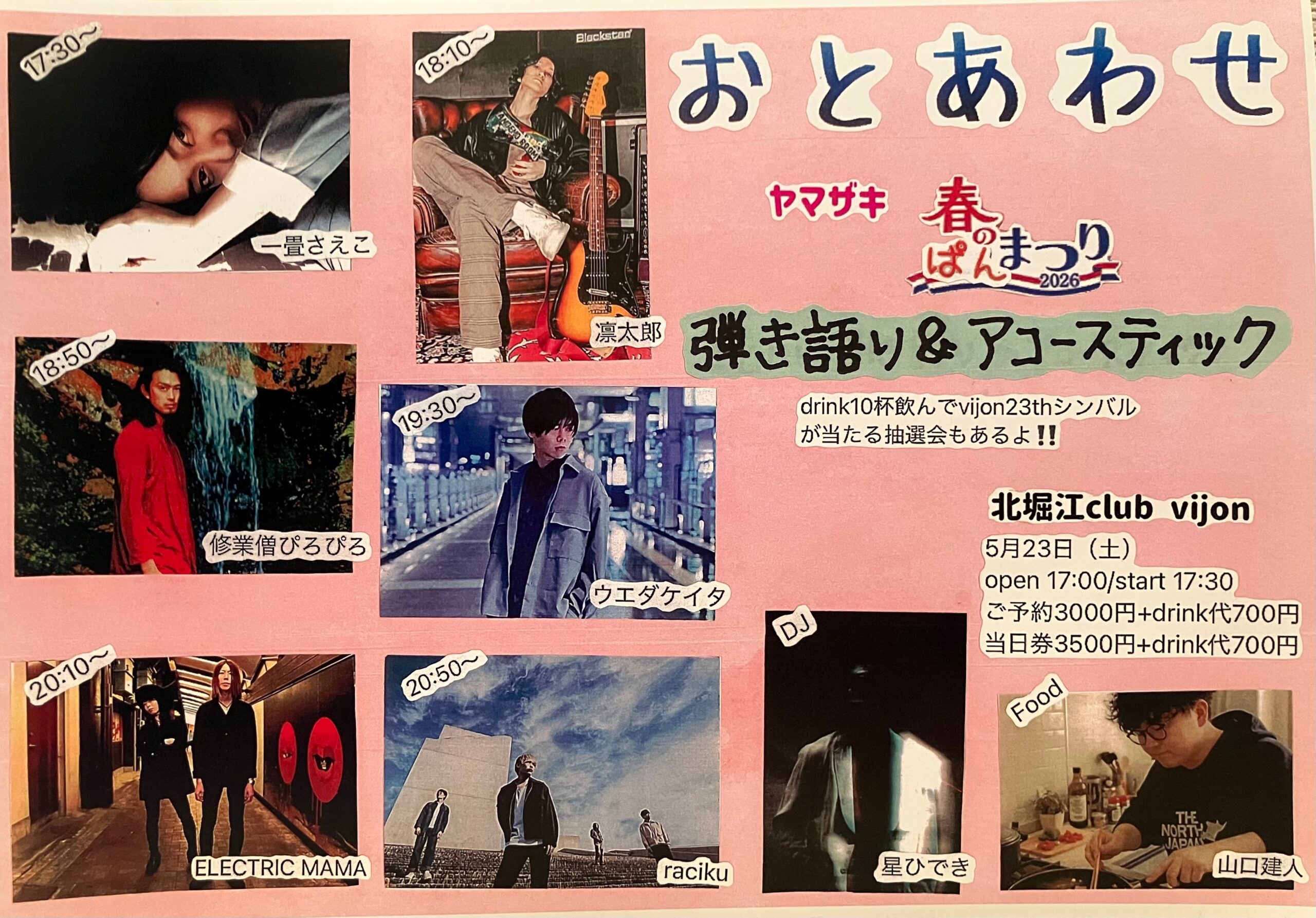 北堀江 club vijonraciku / ELECTRIC MAMA / ウエダケイタ / 修業僧ぴろぴろ / 凛太郎 / 一畳さえこ / [DJ] 星ひでき / [FOOD] 山口建人