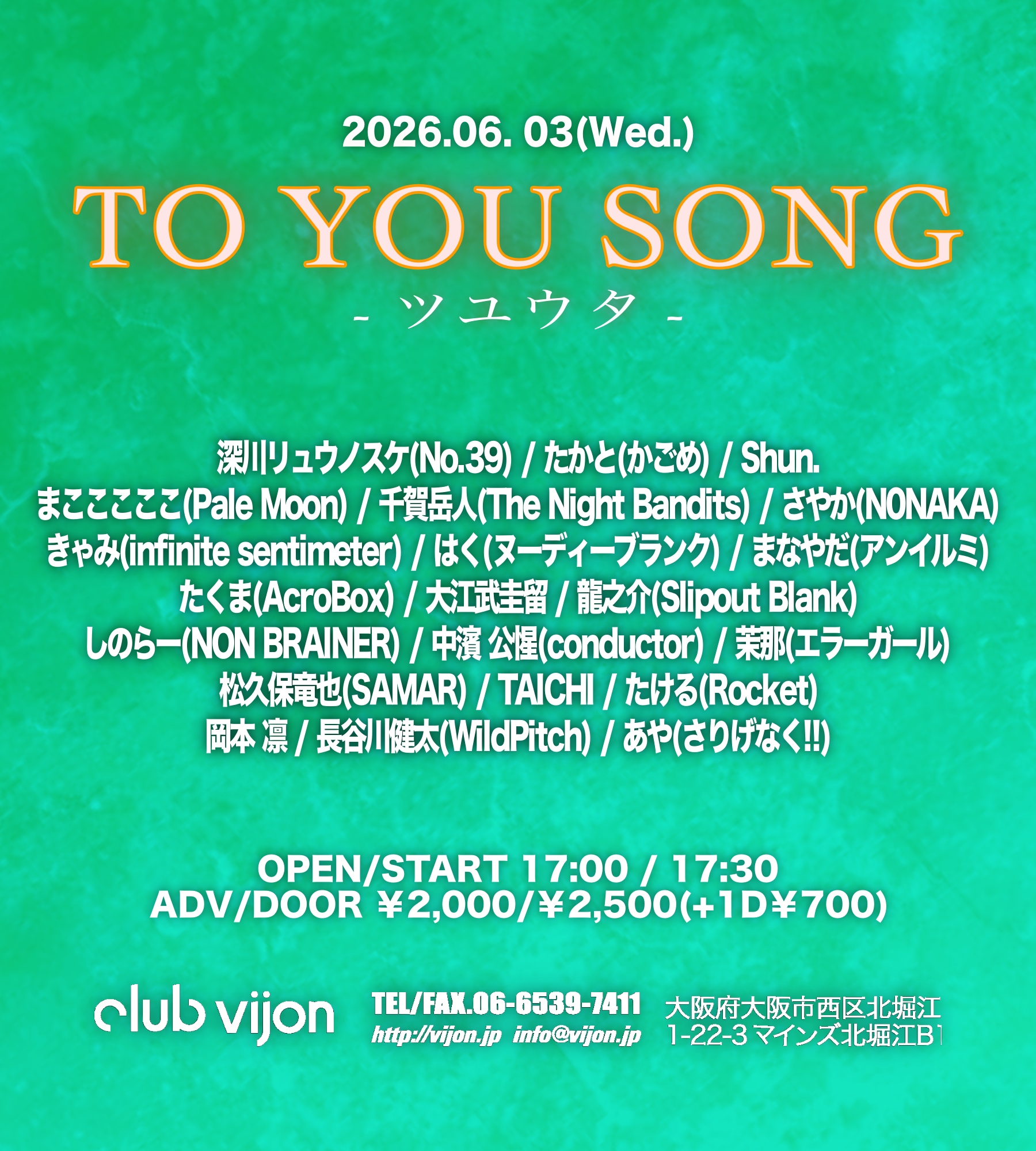 深川リュウノスケ(No.39) / たかと(かごめ) / Shun. / まこここここ(Pale Moon) / 千賀岳人(The Night Bandits) / さやか(N0NAKA) / きゃみ(infinite sentimeter) / はく(ヌーディーブランク) / まなやだ(アンイルミ) / たくま(AcroBox) / 大江武圭留 / 龍之介(Slipout Blank) / しのらー(NON BRAINER) / 中濱 公惺(conductor) / 茉那(エラーガール) / 松久保竜也(SAMAR) / TAICHI / たける(Rocket) / 岡本 凛 / 長谷川健太(WildPitch) / あや(さりげなく!!)