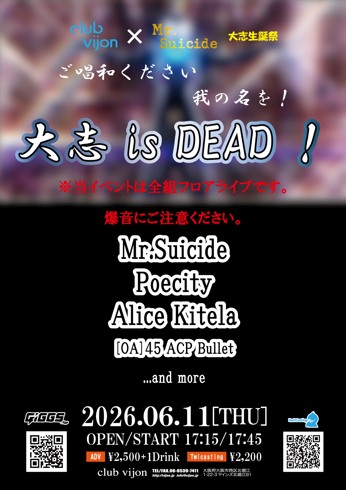 北堀江 club vijonMr.Suicide / Poecity / Alice Kitela / [OA]45 ACP Bullet / …and more