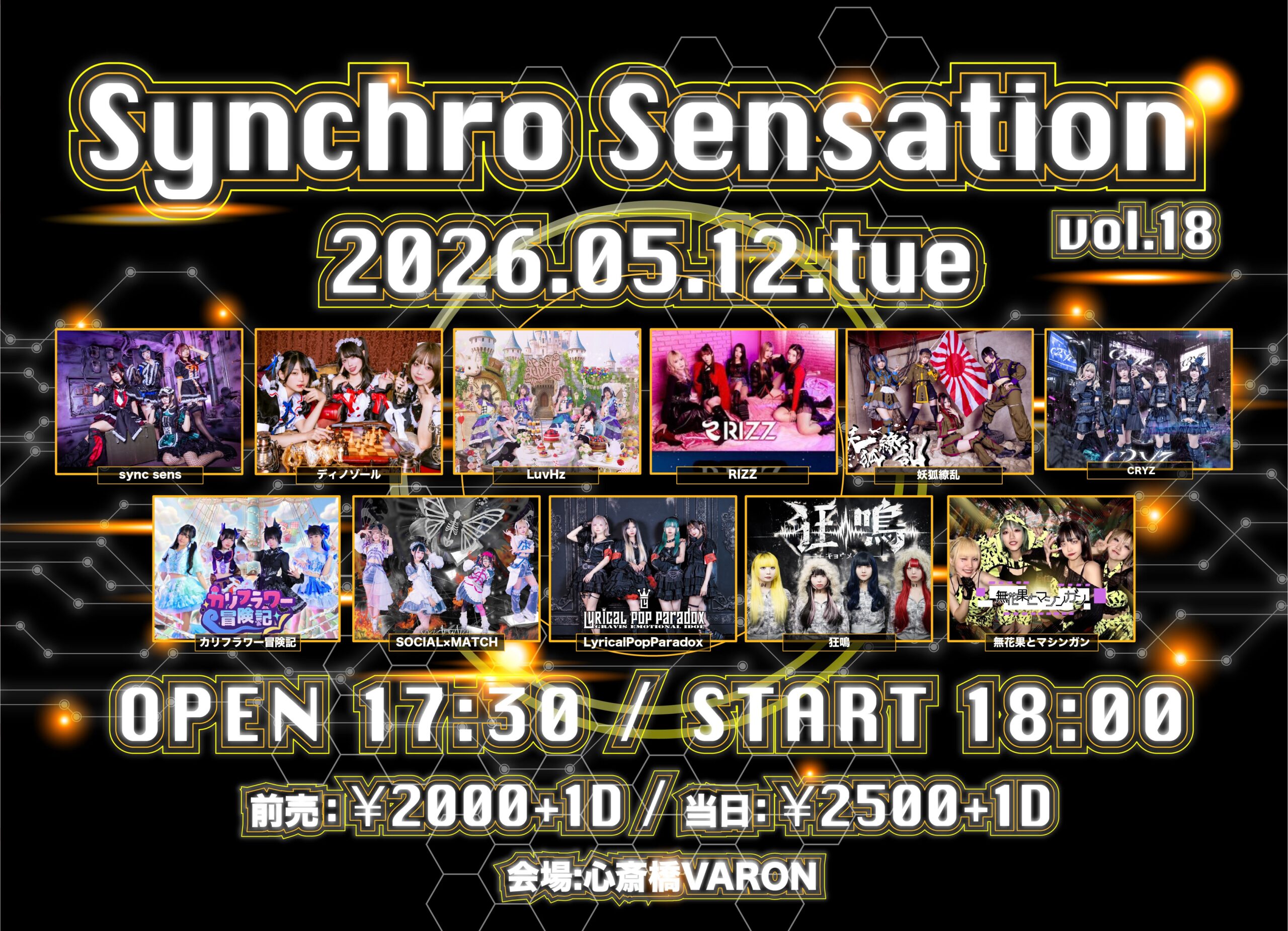 心斎橋VARONディノゾール / sync sens / 妖狐繚乱 / CRYZ / Fortuness / カリフラワー冒険記 / LyricalPopParadox / SOCIAL×MATCH / 狂鳴 / COzMICぱれーど