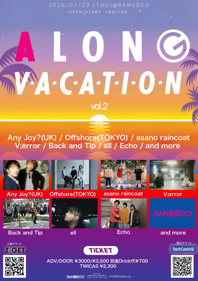 梅田BANGBOOAny Joy?(UK) / Offshore(TOKYO) / asano raincoat / V;error / Back and Tip / ell / Echo / and more